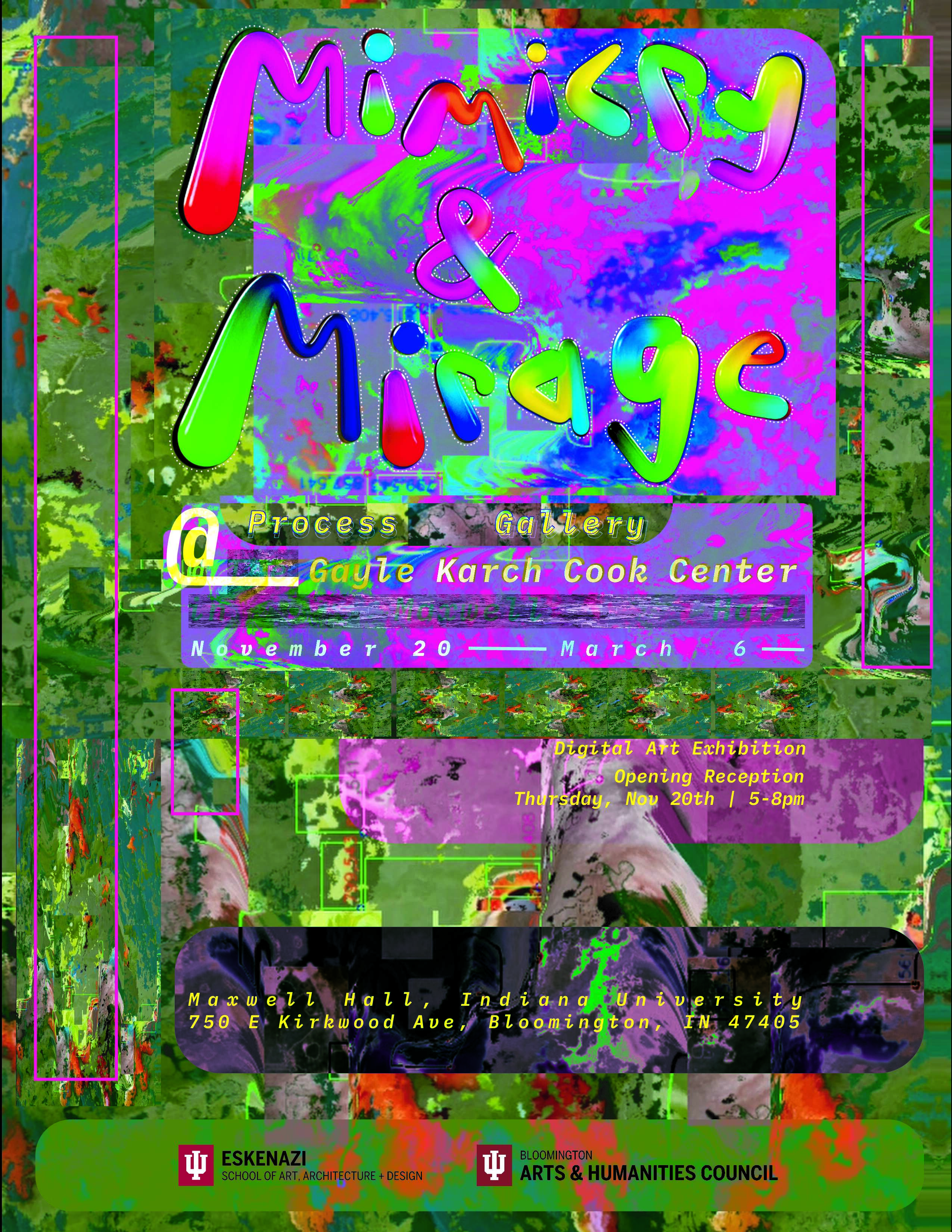Mimicry and Mirage explores the interplay between visibility and concealment, adaptation and deception, through the lens of extended reality. Drawing inspiration from camouflage in the natural world, the exhibition showcases digital artworks that challenge perceptions and invite viewers to question what is seen, hidden, or imagined. These works investigate the concept of camouflage not only as a biological phenomenon but as a metaphor for navigating identity, space, and algorithmic landscapes in an increasingly mediated world.